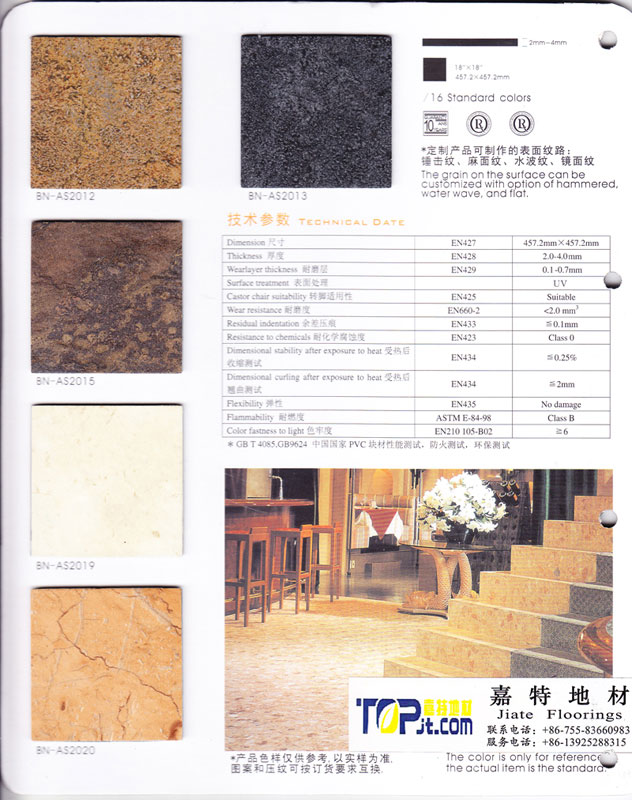記者在市場上看到,當下的PVC地板花色品種比較豐富,但多數是走高仿真路線,包括仿地毯紋、石材紋、木地板紋等,紋路逼真美觀,色彩豐富絢麗。而目前最受歡迎的是仿木地板仿大理石地板,仿木材肌理的擁有木地板細致的紋理和天然清新的感覺,工藝更為精致的甚至具有仿古木地板古樸自然的意蘊;仿大理石紋理的則擁有天然石材自然豐富的紋理,在視覺效果和腳感上都與真正的木地板、大理石相差無幾。